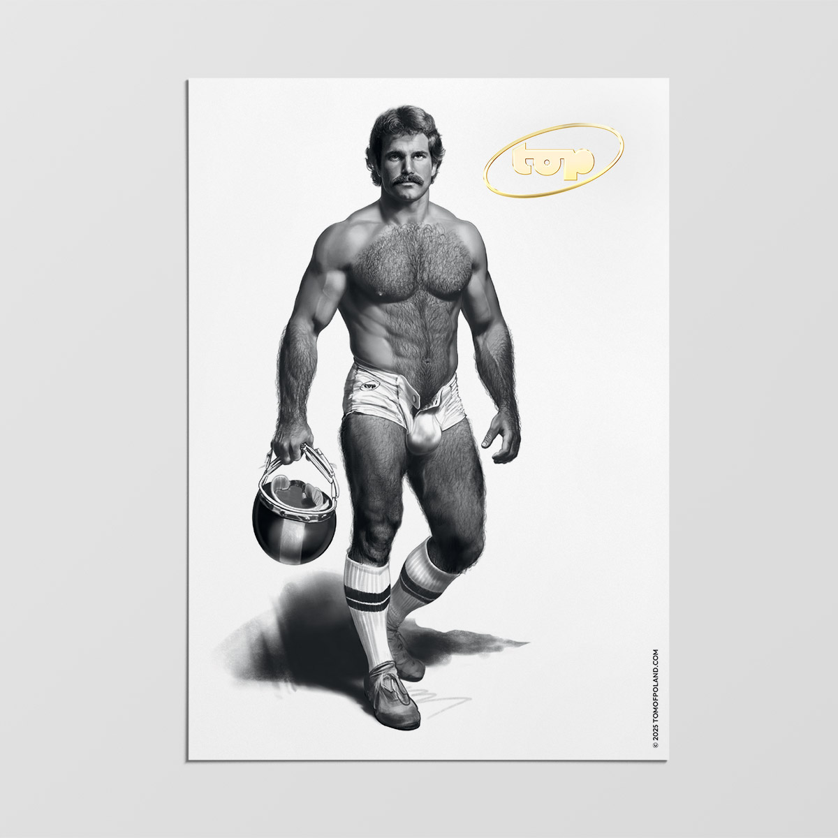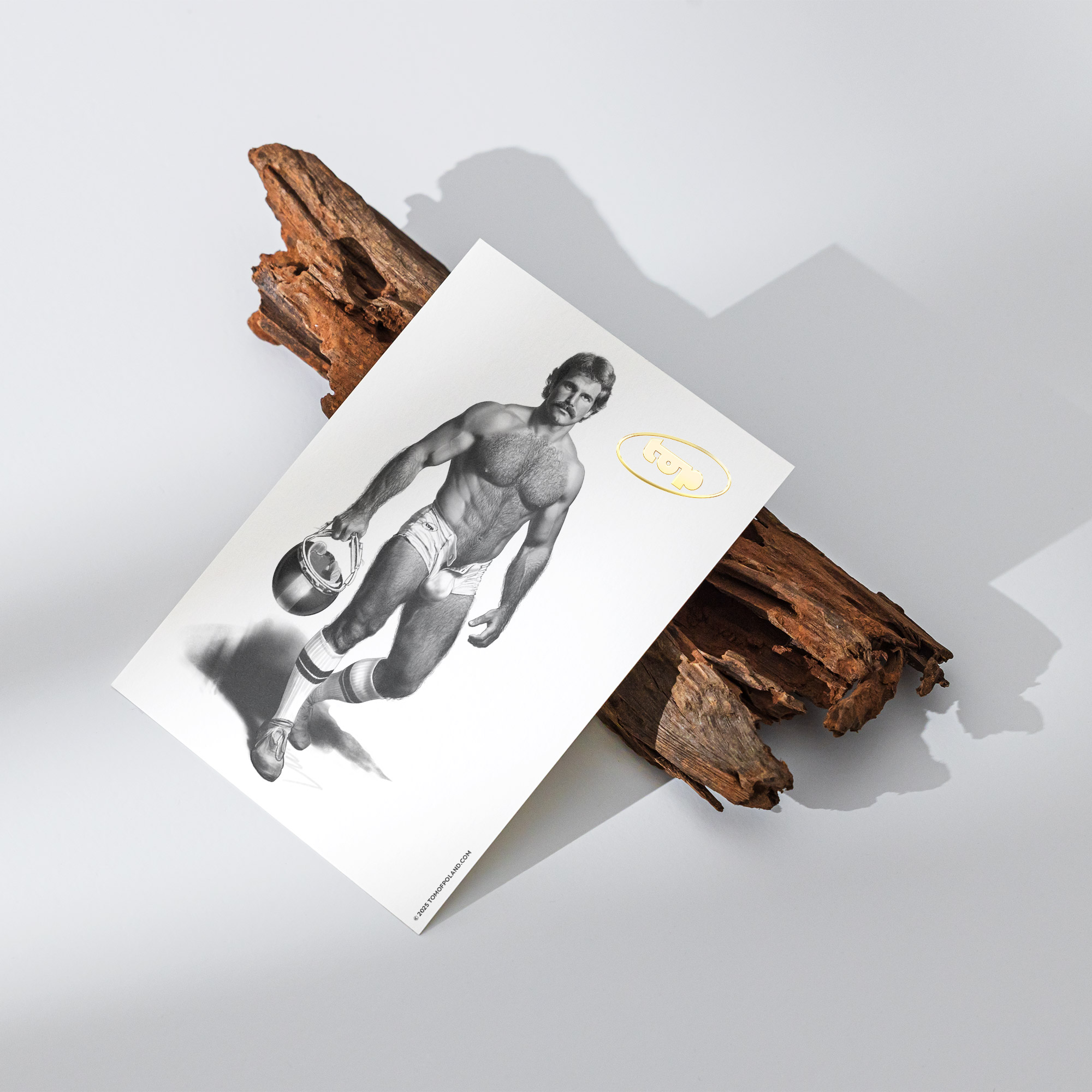 Printed on 400g matte art paper, this A5 collector’s card immortalizes Captain Rick “Steel” — the first icon of the Locker Room Legends series. Rendered with obsessive precision, his sculpted form and commanding gaze capture the raw intensity and erotic charge that define Tom of Poland’s vision of masculinity.