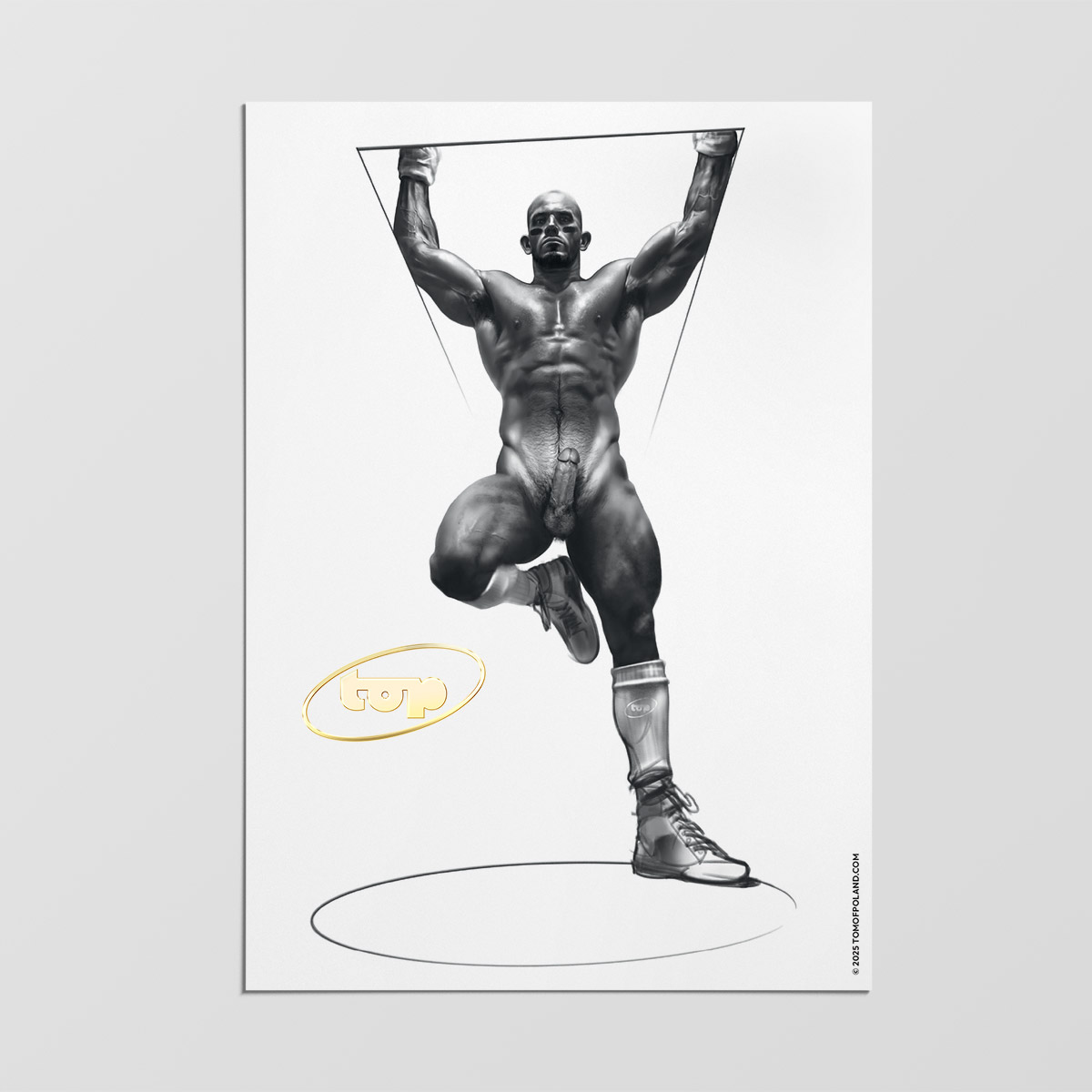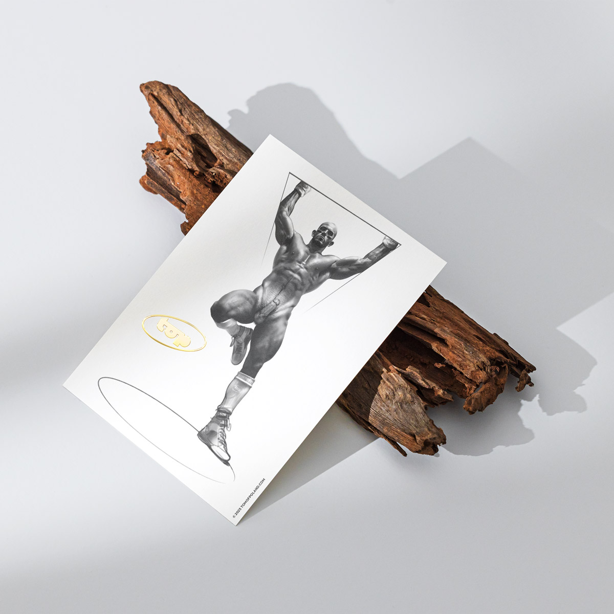 Printed on heavyweight 400g matte paper, this collector’s A5 art card captures the raw power and hyperreal precision of Mike “The Wall” Mason — one of the defining figures of the Locker Room Legends series. Every muscle, shadow, and line is a tribute to discipline, desire, and craftsmanship. Accented with a gold-embossed TOP logo, it embodies the refined eroticism and masculine strength at the heart of Tom of Poland’s world.